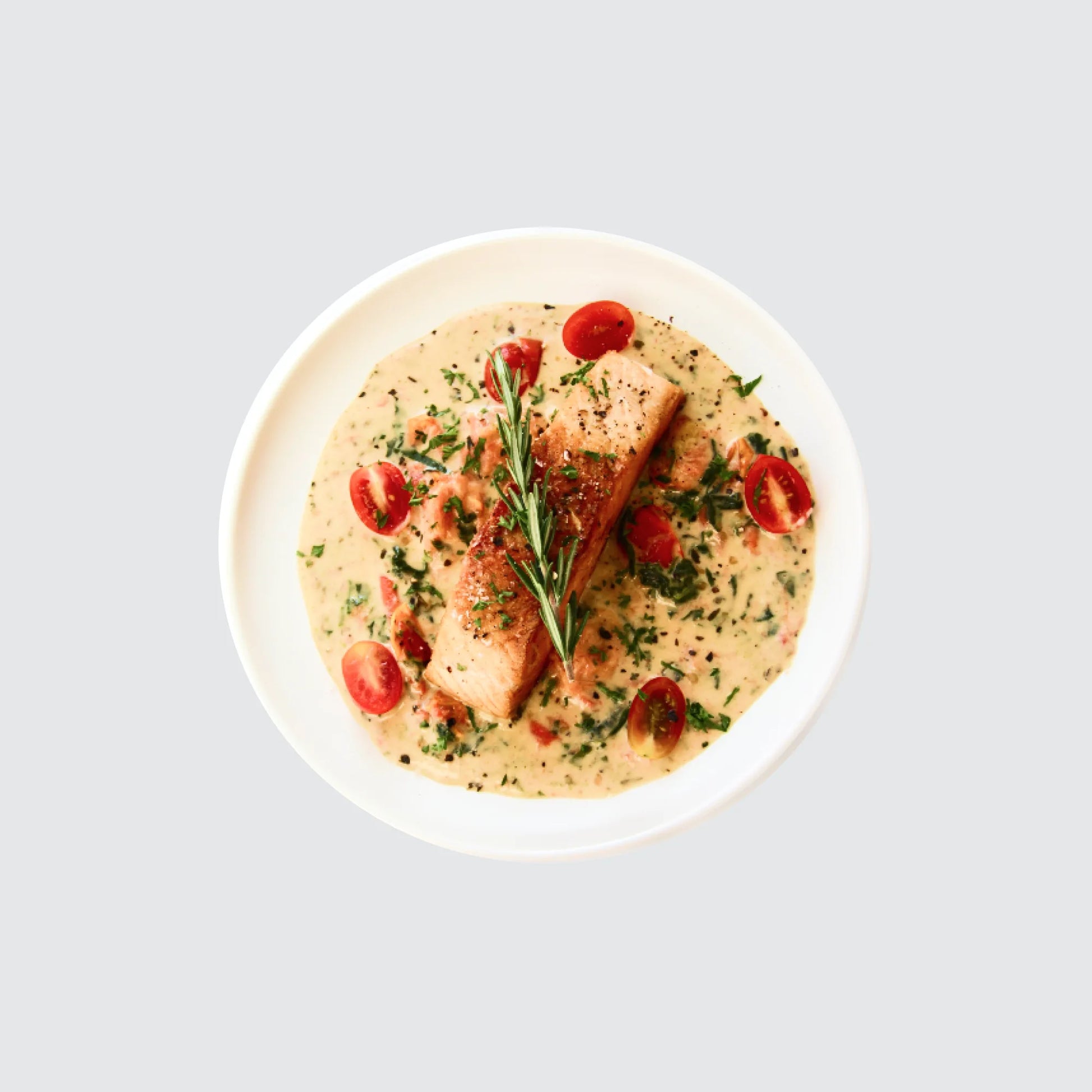 Delicious tender Salmon marinated in a rich & creamy Tuscan sauce made with cherry tomatoes, cheese, butter, spinach, garlic, salt, pepper, and topped off with basil and parsley.